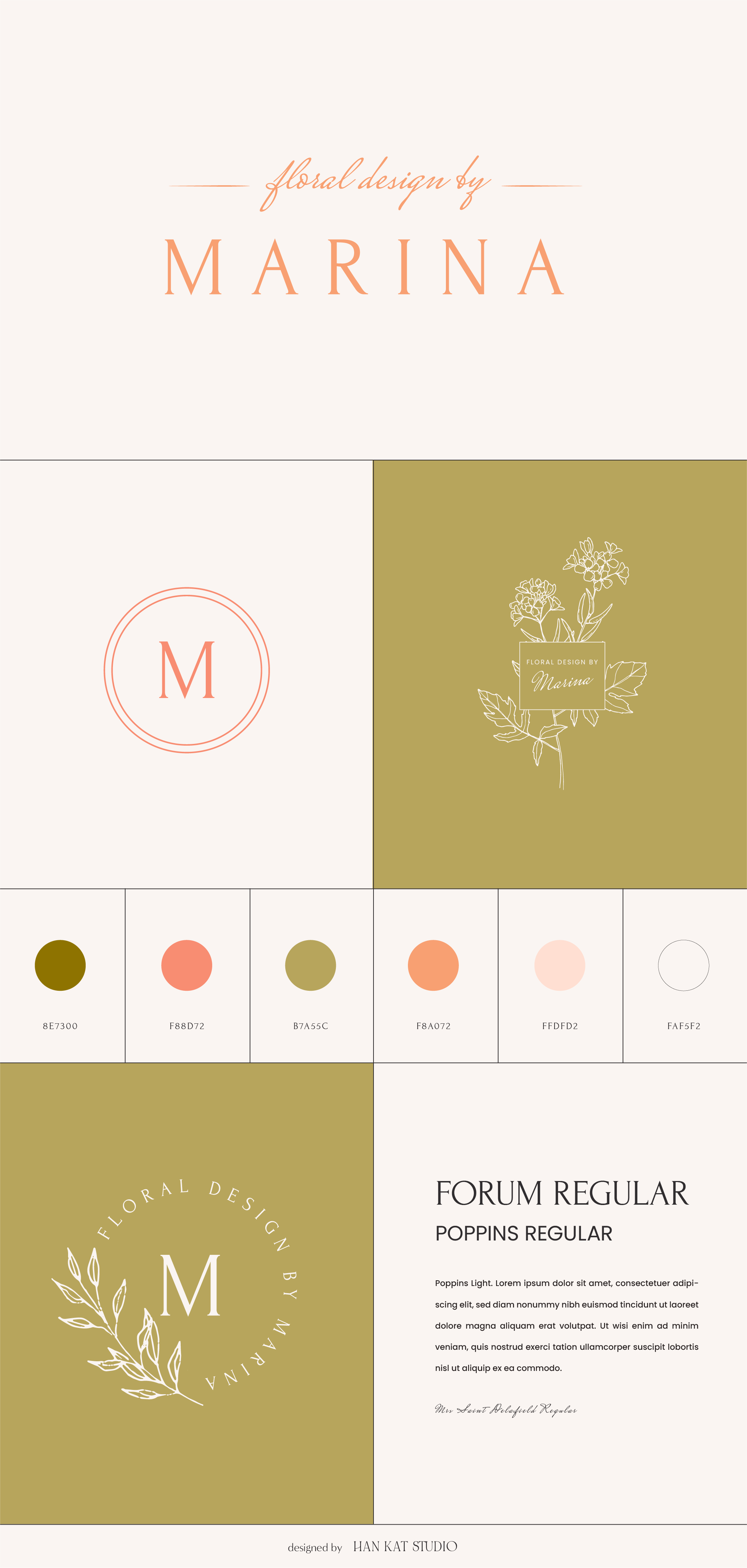 Each semi-custom brand comes with fixed typography and logo variations. We will customize the color palette, icon, and pattern to make your brand personalized to you!